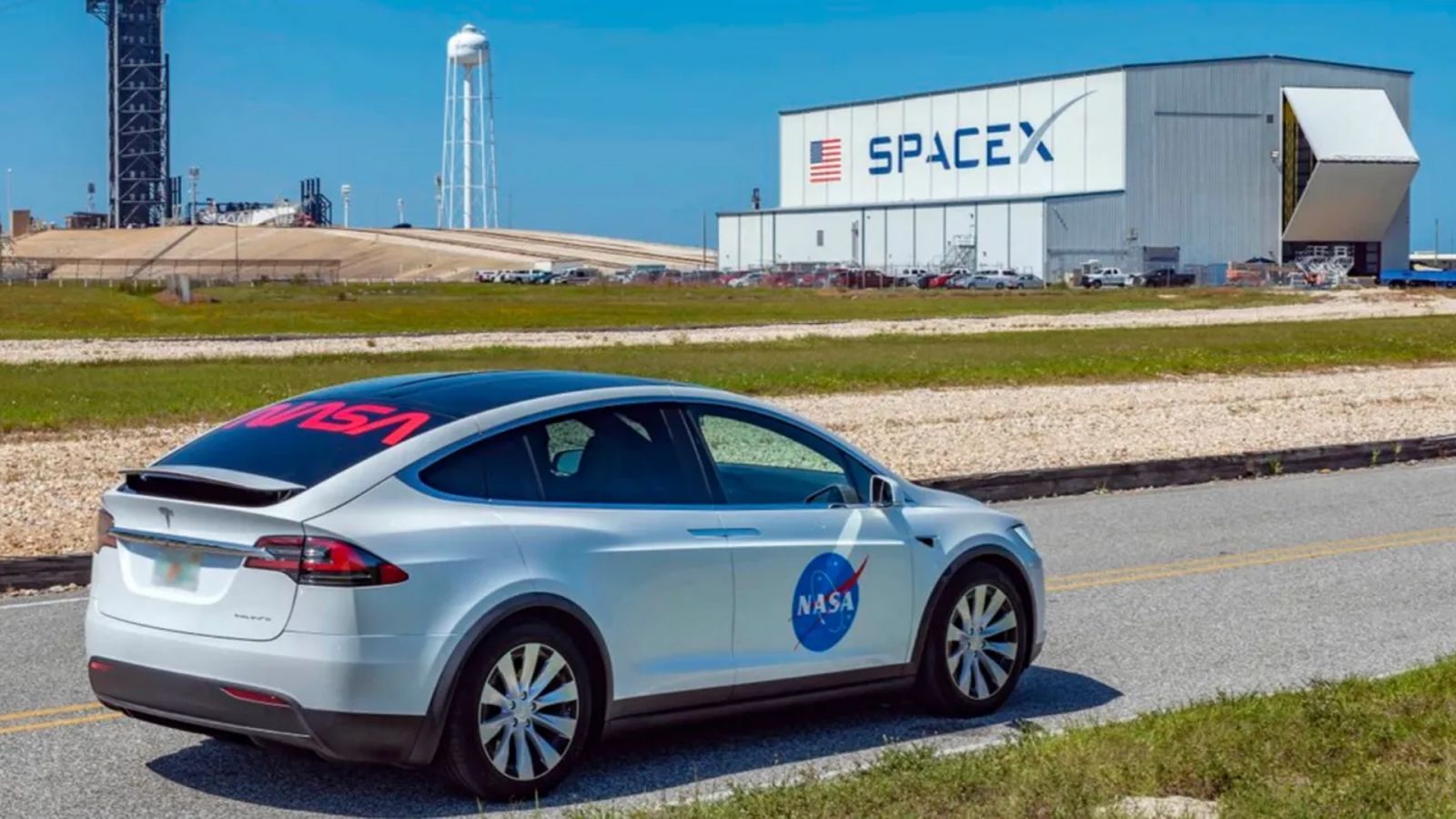 รถยนต์ Tesla ที่มีโลโก้ของนาซาทั้ง Meatball Logo และ Worm logo