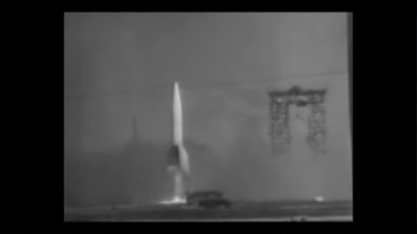ทดสอบจรวด V-2 ที่ฐานปล่อยมิสไซส์ไวท์แซนส์ ถูกบันทึกเป็นภาพเคลื่อนไหวขาว-ดำ