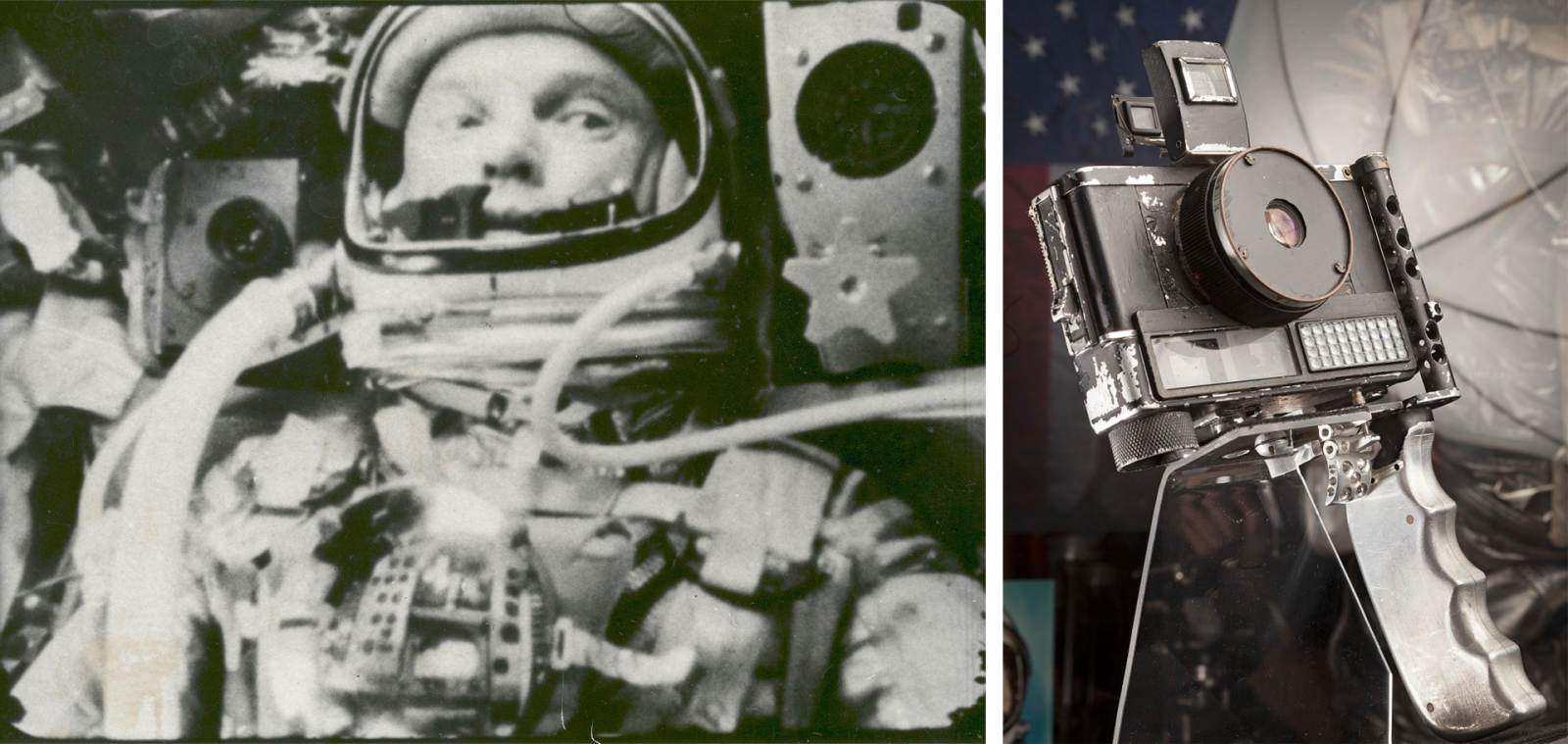 จอห์น เกลน ขณะทำภารกิจ Friendship 7 และ กล้อง Ansco Autoset ที่เขานำขึ้นอวกาศไปด้วย