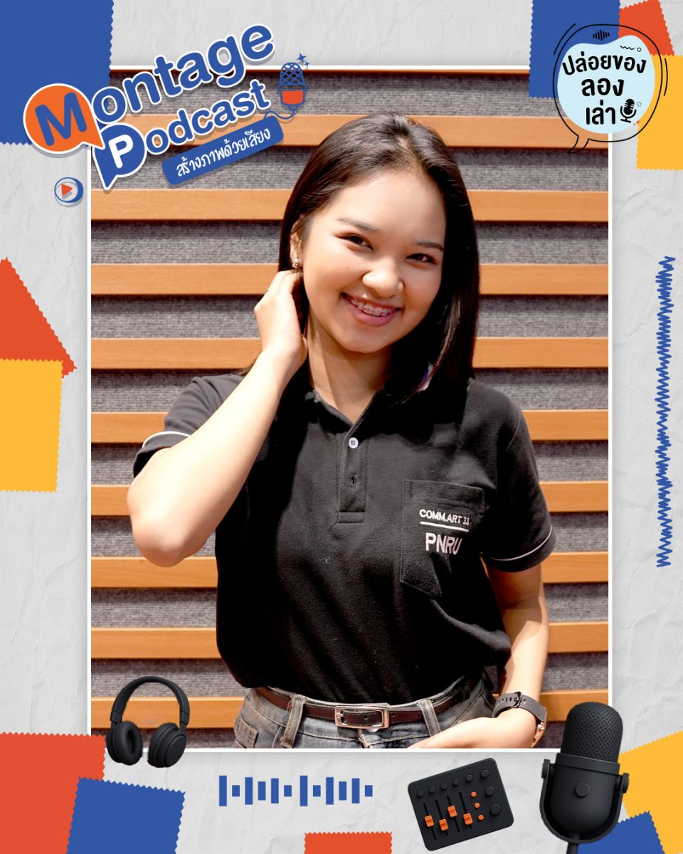 นางสาวสุชานันท์ อ่วมจุก ชั้นปีที่ 4 มหาวิทยาลัยราชภัฏพระนคร “เป็นคนที่รู้เรื่องพอดแคสต์น้อยมาก การอบรมทำให้เข้าใจเรื่องเสียงมากขึ้นว่าจะต้องทำอย่างไร ทำอะไรบ้าง แล้วเสียงแบบไหนที่ทำให้เกิดภาพ สามารถเอาไปทำงานที่กำลังจะทำตอนนี้ได้เลย สำหรับสิ่งที่ชอบมากคือตอน Workshop เพราะได้คิดร่วมกับเพื่อนคนอื่นจากต่างมหาวิทยาลัยด้วยได้แลกเปลี่ยนความรู้กัน พูดคุยกันมากขึ้นมันทำให้เราได้รับความคิดเห็นจากคนอื่นกับความคิดของเราเอามาผสมผสานกันก็เลยได้เป็นเรื่องใหม่ขึ้นมาค่ะ”