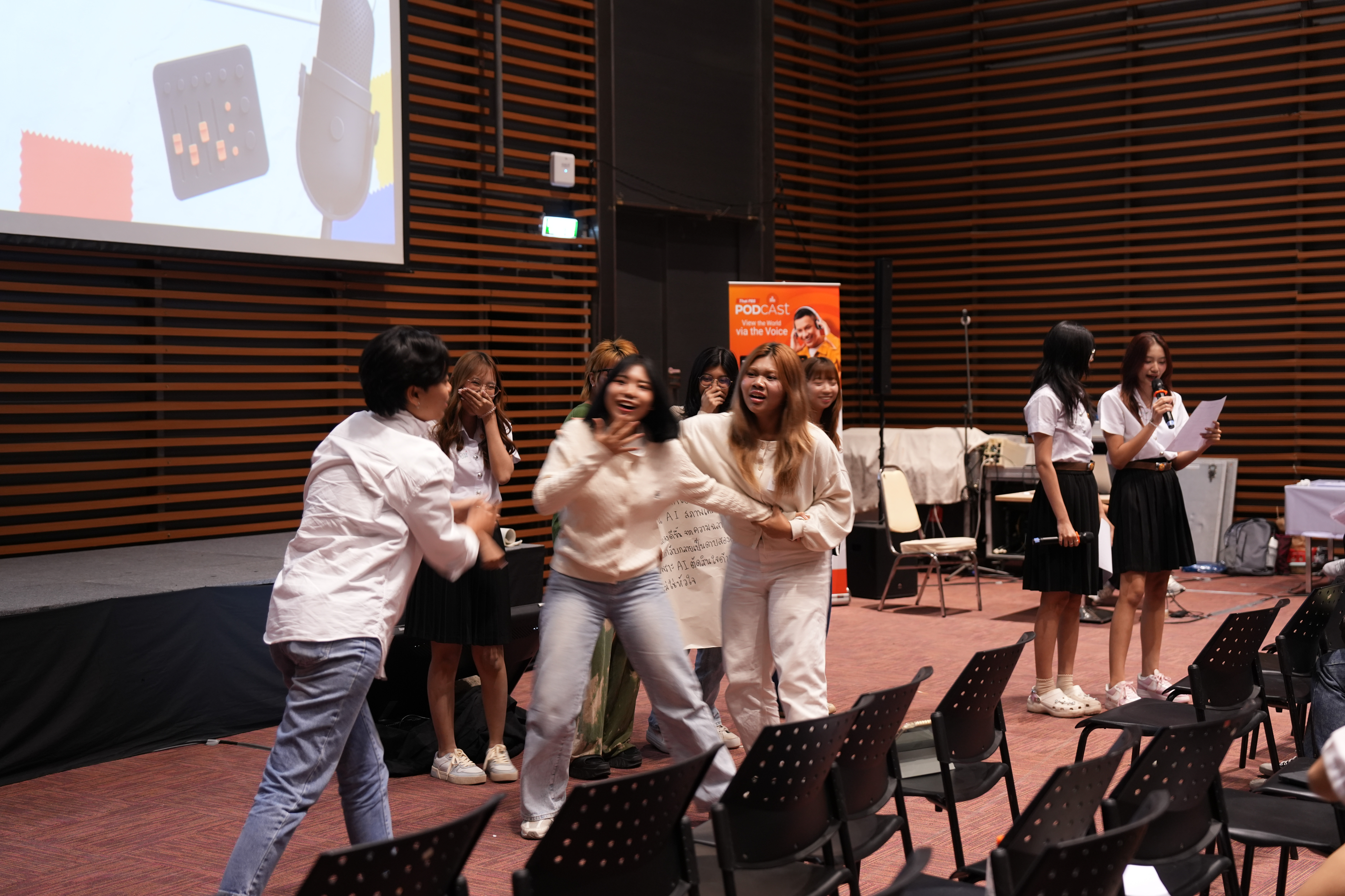 “นักศึกษาสนุกมากนะคะตอนที่คิดว่าจะ Present อย่างไรดี เพราะว่าเรื่องเสียงไม่ค่อยมีคนอบรมเยอะเท่าไหร่ พอได้มาฝึกอบรมที่นี่ก็เลยทำให้เด็ก ๆ รู้สึกว่าสนุกแล้วก็มองเห็นว่า เสียงก็มีอะไรให้เล่นได้อีกเยอะเลยค่ะ คือปกติเขา (นักศึกษา) คงเคยฟังพอดแคสต์ แต่ส่วนใหญ่มักจะเป็นการพูดคุยกันระหว่างคนสองคนวันนี้ได้เรียนเรื่องของ Audio ซึ่งสามารถเอาไปประยุกต์ใช้ในงานพอดแคสต์ได้อีกด้วย แล้วก็มองเห็นว่ามันมีโอกาสที่จะทำพอดแคสต์ได้ในรูปแบบต่าง ๆ อีกมากมายที่เล่นกับเสียงได้อีกค่ะ”