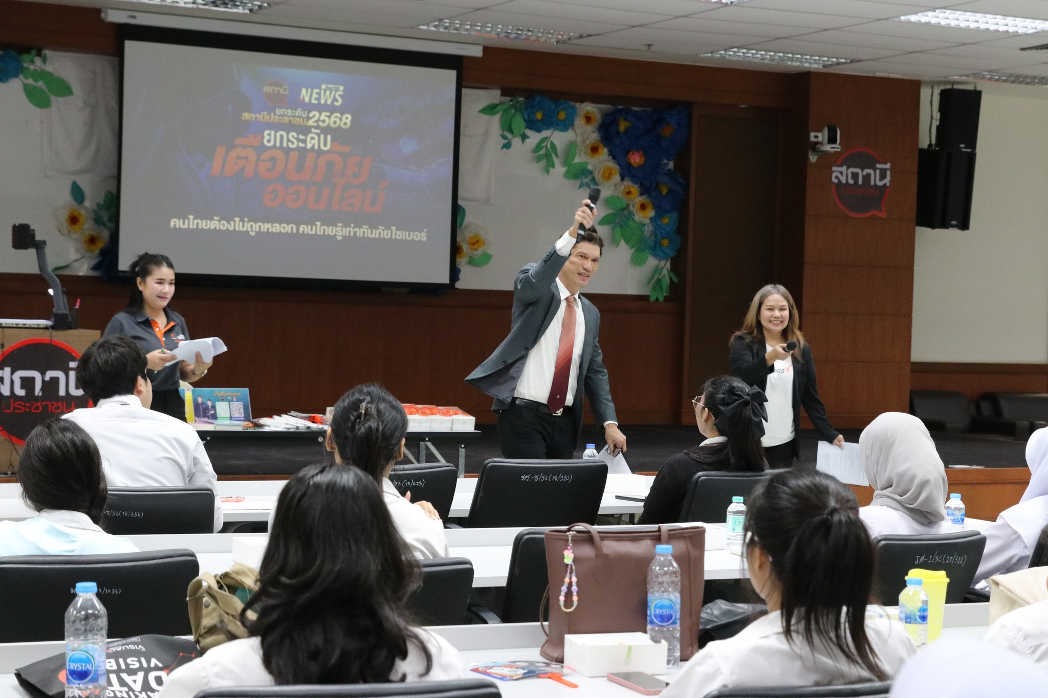 เมื่อวันที่ 25 ก.ย.68 ที่ผ่านมา ทีมงานไทยพีบีเอส ประกอบด้วย รายการสถานีประชาชน, รายการภูมิคุ้มกัน ไทยพีบีเอสพอดแคสต์, Thai PBS Verify สำนักสื่อดิจิทัล และศูนย์สื่อสารและส่งเสริมการตลาดเพื่อสาธารณะ ร่วมออกบูธและจัดบรรยายใน “โครงการยกระดับเตือนภัยออนไลน์ สร้างเครือข่ายนักศึกษาให้รู้เท่าทันภัยไซเบอร์” โดยผนึกกำลังกับตำรวจสอบสวนกลาง (CIB) ลงพื้นที่บรรยายให้ความรู้ที่มหาวิทยาลัยรามคำแหง เพราะจากสถิติการแจ้งความออนไลน์ในช่วงกว่า 3 ปีที่ผ่านมา ยอดสูงกว่า 1,000,000 คดี ความเสียหายกว่า 97,000 ล้านบาท โดยมีแนวโน้มที่จะเพิ่มขึ้นอย่างต่อเนื่อง จึงต้องสร้างเครือข่ายให้ข้อมูลประชาชนเพื่อป้องกันไม่ให้ถูกหลอก