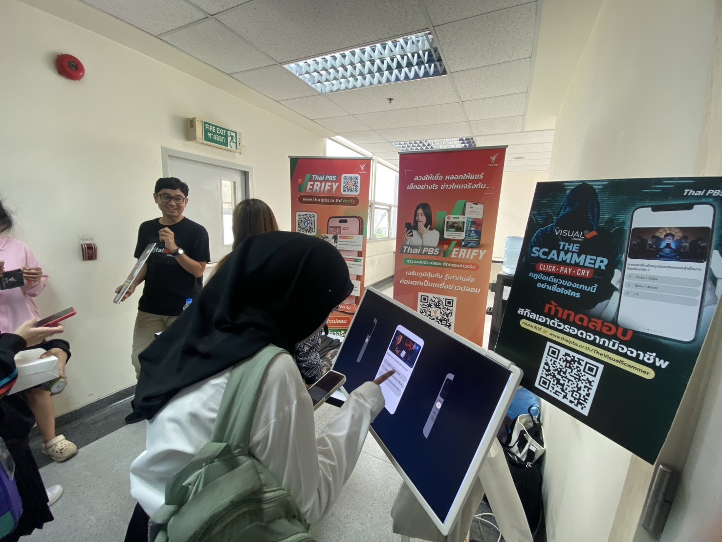 Thai PBS Verify ร่วมจัดบูธ พร้อมเปิดตัวผลงานใหม่ล่าสุดอย่าง "THE SCAMMER CLICK • PAY • CRY : กฎข้อเดียวของเกมนี้ = อย่าเชื่อใจใคร" ที่นำเสนอเรื่องราวของภัยมิจฉาชีพผ่าน Data Visualization ที่เข้าใจง่าย พร้อมเกมจำลองสถานการณ์ให้ได้ทดสอบทักษะการเอาตัวรอด